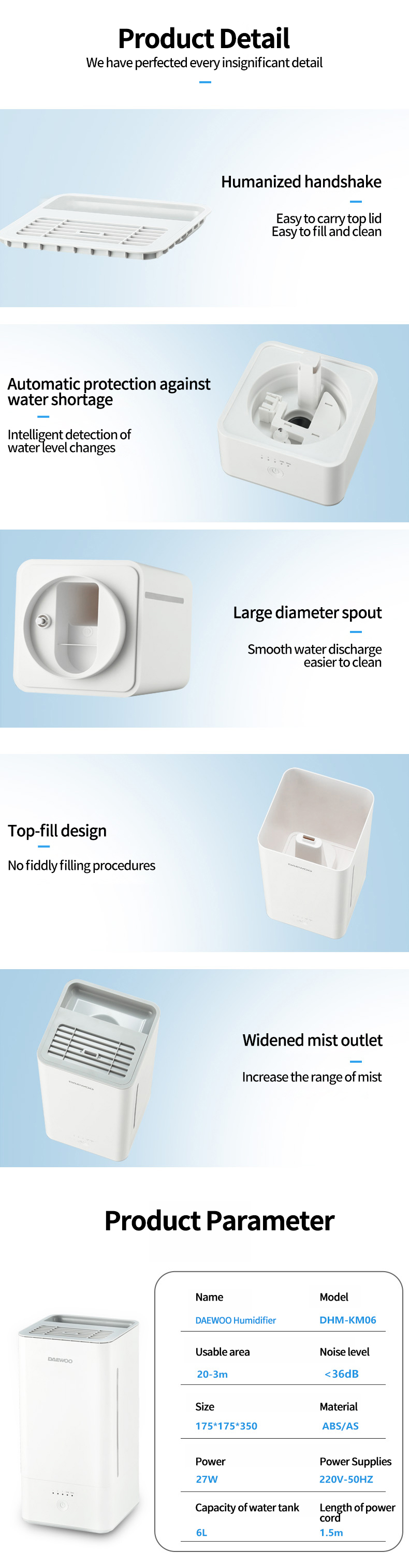 • 6L large capacity constant temperature humidifier
