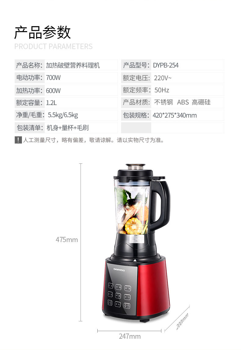 - Power rating:heating 1200W motor 1000W