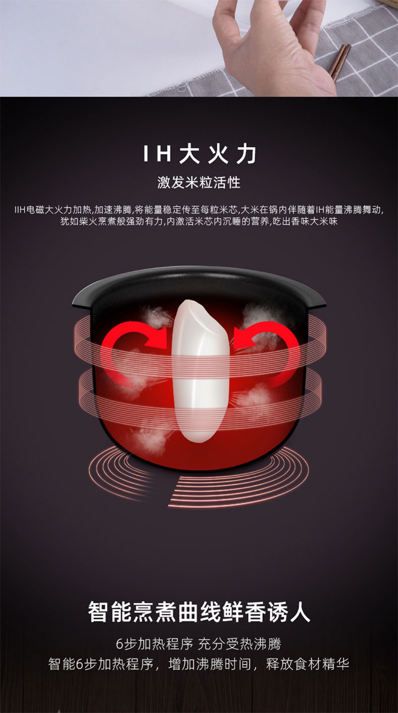 - IH 1300W high power heating the bowl-shaped coil it heated by inner pot body foods heated more quickly more evenly