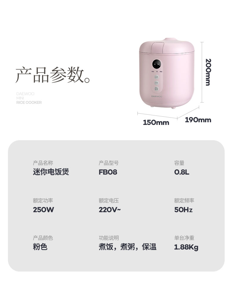 - Capacity(L): 0.8L