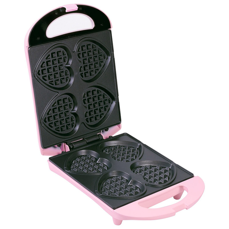 - Prepares delicious heart-shaped waffles on a stick
